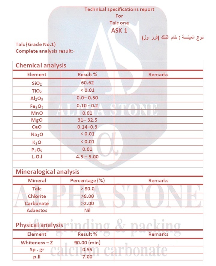 يستخدم التلك في الكثير من الصناعات في أوروبا لذلك تم إنشاء معيار للمحافظة على جودة التلك المستخدم في التصنيع