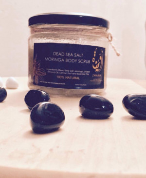 مقشر المورينجا للجسم بفعالية ثنائية لاحتوائه على ملح البحر الميت الذي يساعد على تجديد خلايا الجسم وخليط الزيوت المغذية الذي يترك البشرة ناعمة ولامعة.