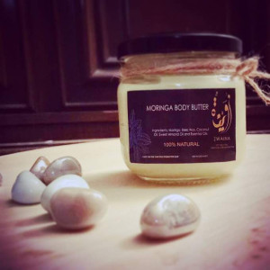 زبدة جسم طبيعية 100% لترطيب مضاعف، غني بزيت المورينجا المستخلص من شجرة المعجزات.